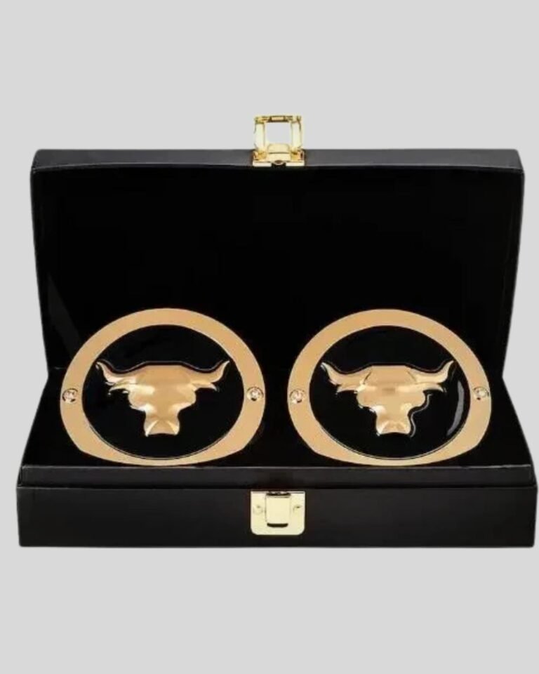 WWE The Rock Side Plates Championship Title Box Set – Brass Metal Bull Logo Inserts – 4.25” x 3.16”
