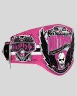 Celebrate the excellence of execution with the Bret Hart Legacy Belt – a pink-drenched WWE championship tribute to the Hitman’s unmatched legacy. With detailed skull-and-wing artwork and signature slogans, it’s a bold collectible for true wrestling fans.