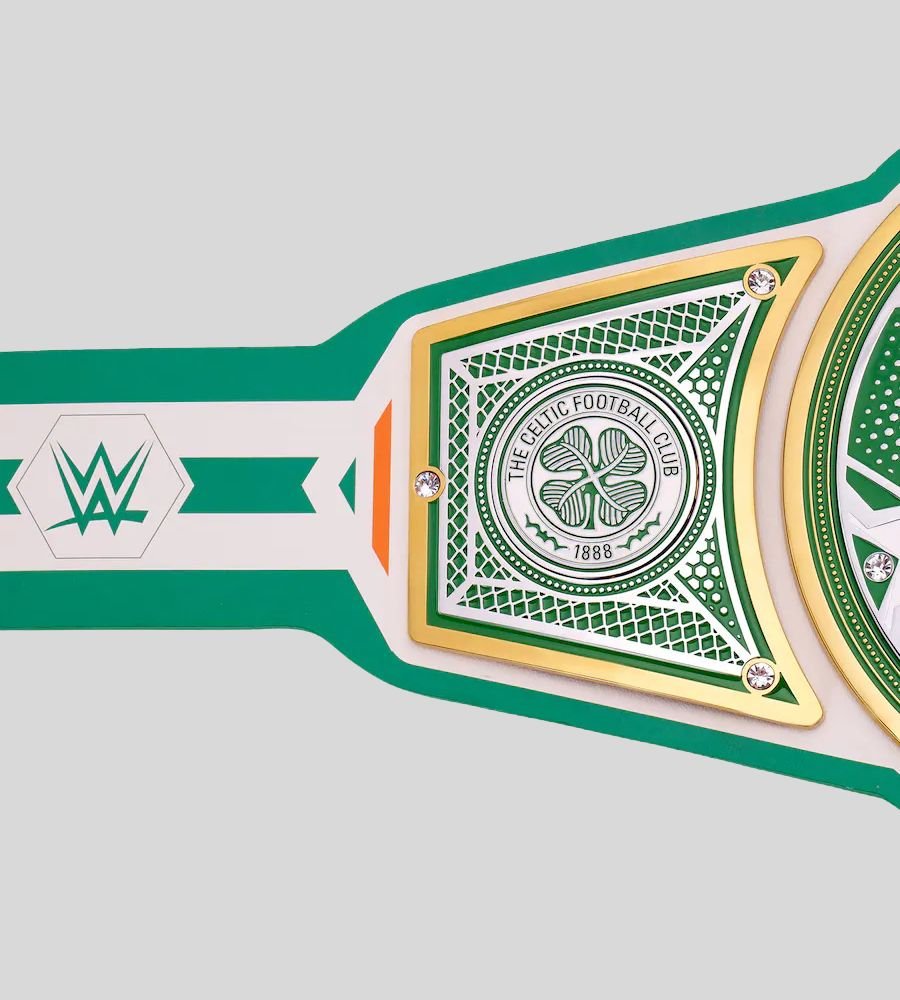 Celebrate Celtic pride with the Celtic FC WWE Championship Belt – a striking tribute to the Hoops’ legendary legacy. Featuring green and white club-inspired detailing, bold brass plates with the iconic crest, and a custom leather strap.