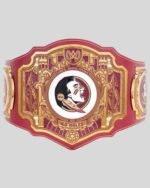 Celebrate Seminole pride with this brass WWE-style legacy belt. Features official FSU logo, rich maroon leather, and “Go ‘Noles” detail—built for champions!