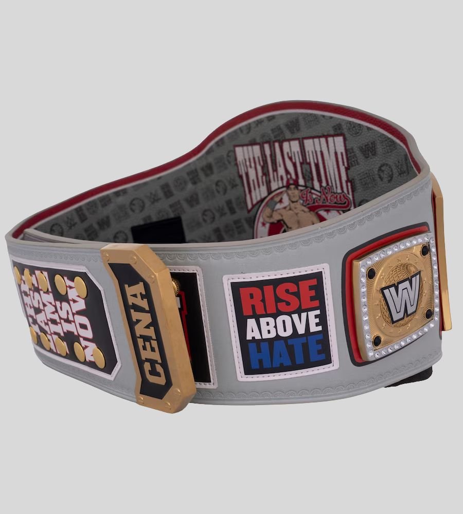 Celebrate the legacy of John Cena with the 2025 Farewell Spinner Championship Belt, honoring his final WWE run. Featuring iconic slogans like “Never Give Up” and “Champ is Here,” this collector’s piece is crafted from brass metal with optional zinc or CNC upgrades.