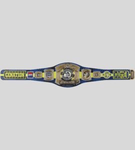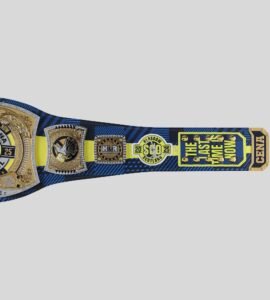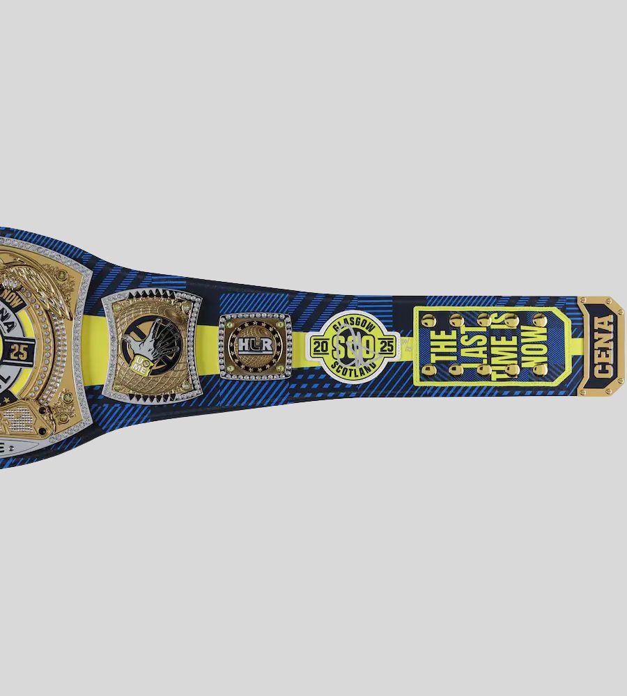 Celebrate the legendary career of John Cena with this Farewell Championship Belt 2025 Edition. Featuring brass metal plates, a bold blue and yellow strap, and iconic Cena mottos like Never Give Up and The Time is Now, this belt is a must-have tribute for WWE fans.