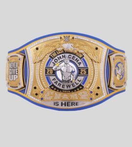 Celebrate the career of a WWE legend with the John Cena Farewell WWE Championship Belt 2025. Designed in tribute to Cena’s final run, this belt features “The Last Time Is Now” detailing, blue strap customization, and premium brass plates with upgrade options. A must-have for every Cena fan.