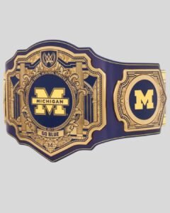 Represent Wolverine pride with this WWE-style belt featuring the iconic “M”, brass plates, and navy leather. A perfect collectible for Michigan fans.