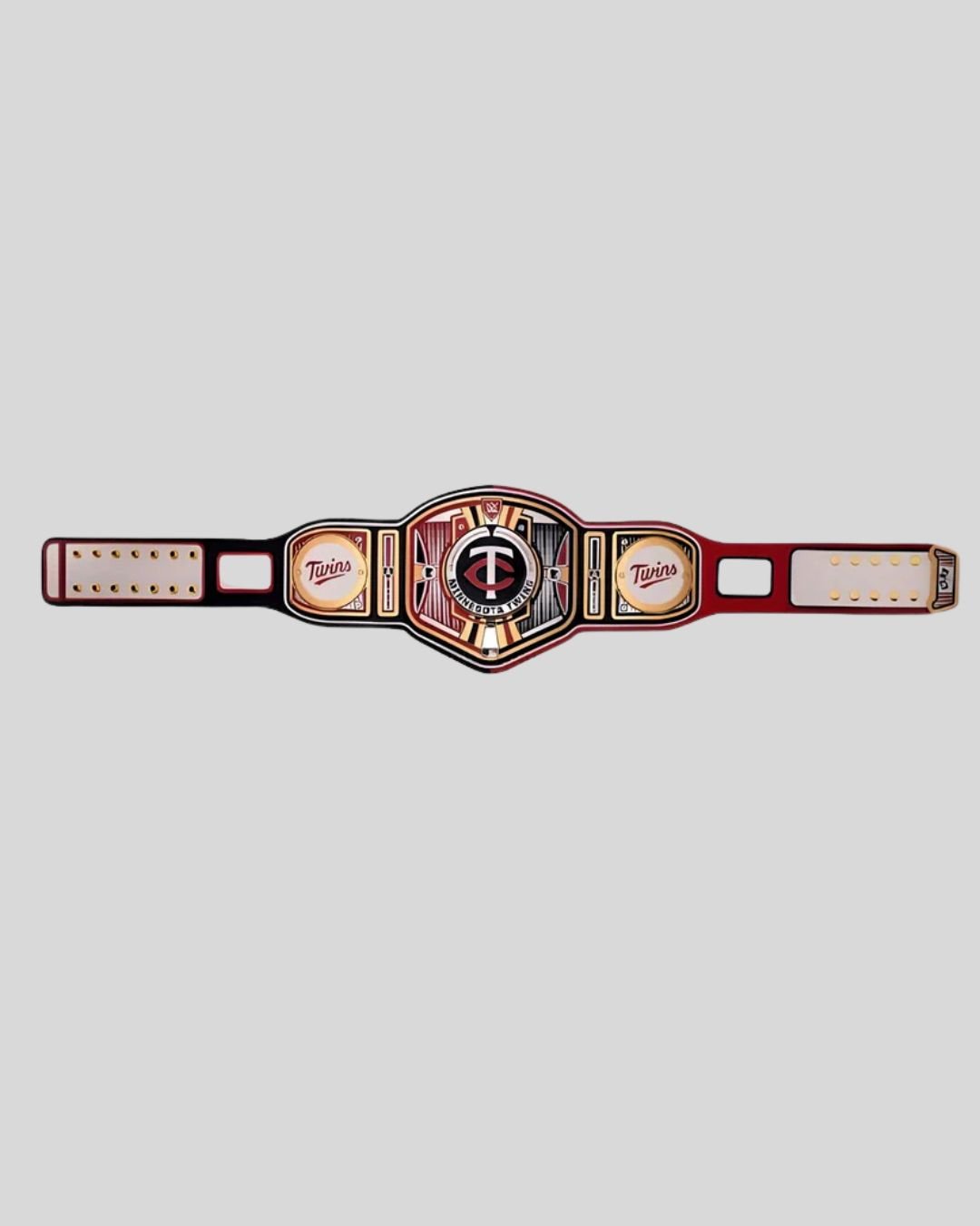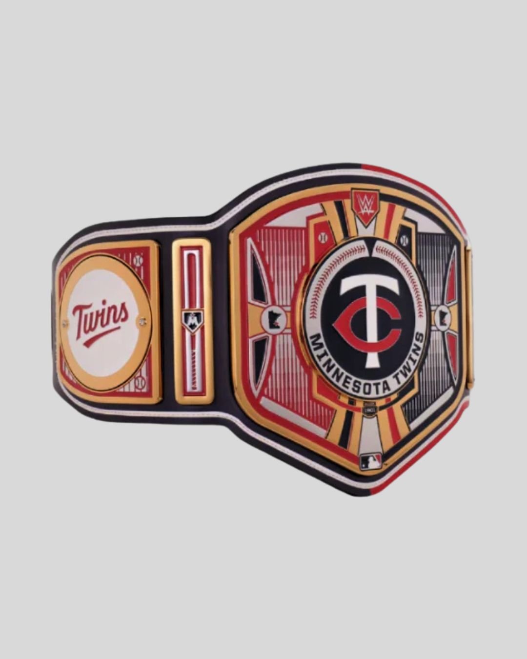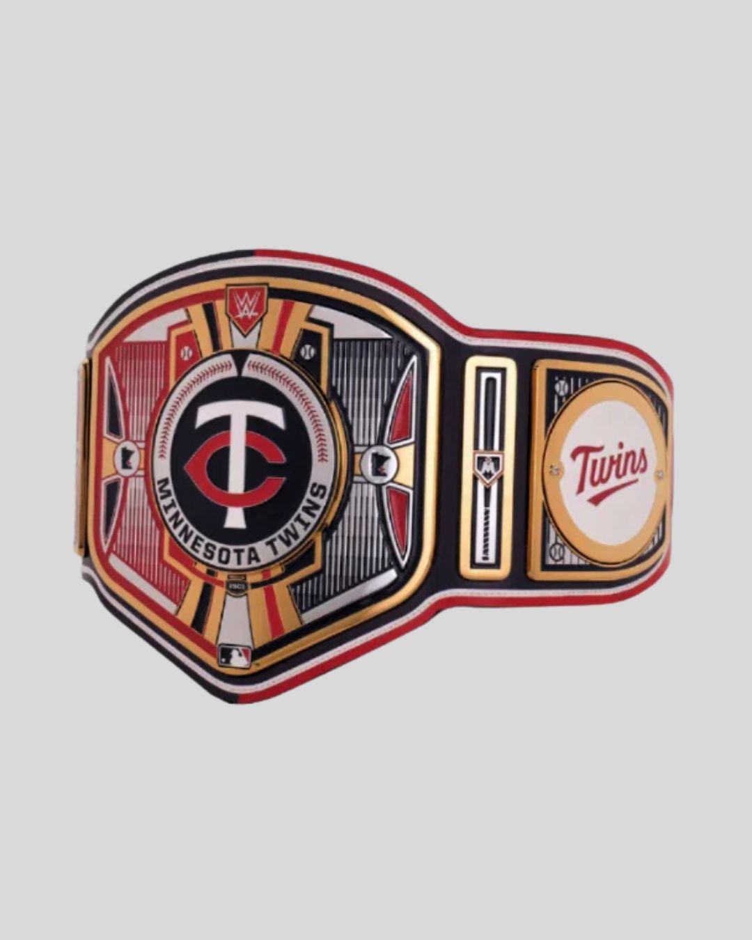 Celebrate the power and pride of the Twin Cities with the Minnesota Twins WWE MLB Legacy Belt – a championship masterpiece that blends bold red, black, and gold accents with elite wrestling flair. Centered by the iconic Twins “TC” emblem inside a baseball frame, this belt reflects the team’s deep heritage and loyal fanbase.