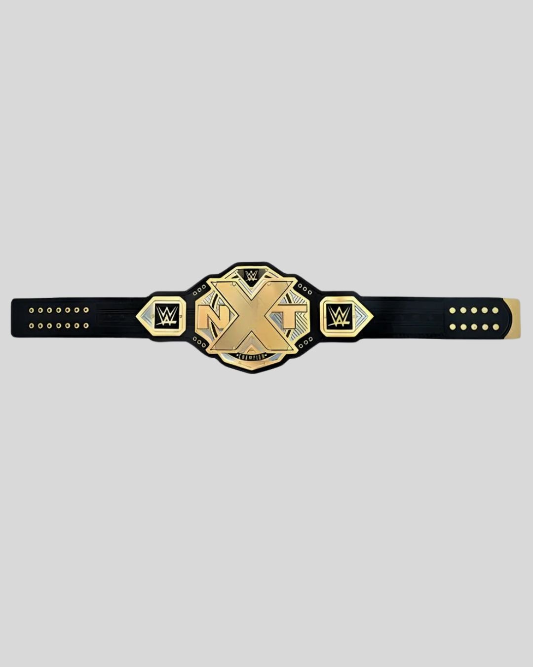 Relive the golden era of NXT with the 2017 NXT Championship Belt. Featuring a bold X-shaped gold plate and textured leather strap, this belt is a symbol of excellence and prestige from WWE’s black-and-gold brand.