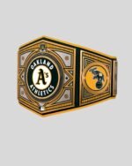 Celebrate the Oakland A’s legacy with this WWE MLB Championship Belt. Featuring the classic A’s logo, brass plates, and leather strap. Fully customizable for collectors and superfans.
