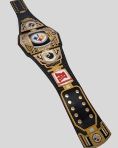 Celebrate six-time Super Bowl glory with the Pittsburgh Steelers WWE Belt – an iconic fusion of pro football heritage and WWE power. Featuring polished gold plates, the signature Steelmark logo, and a bold black strap, this belt captures the strength and prestige of Pittsburgh’s gridiron dynasty.