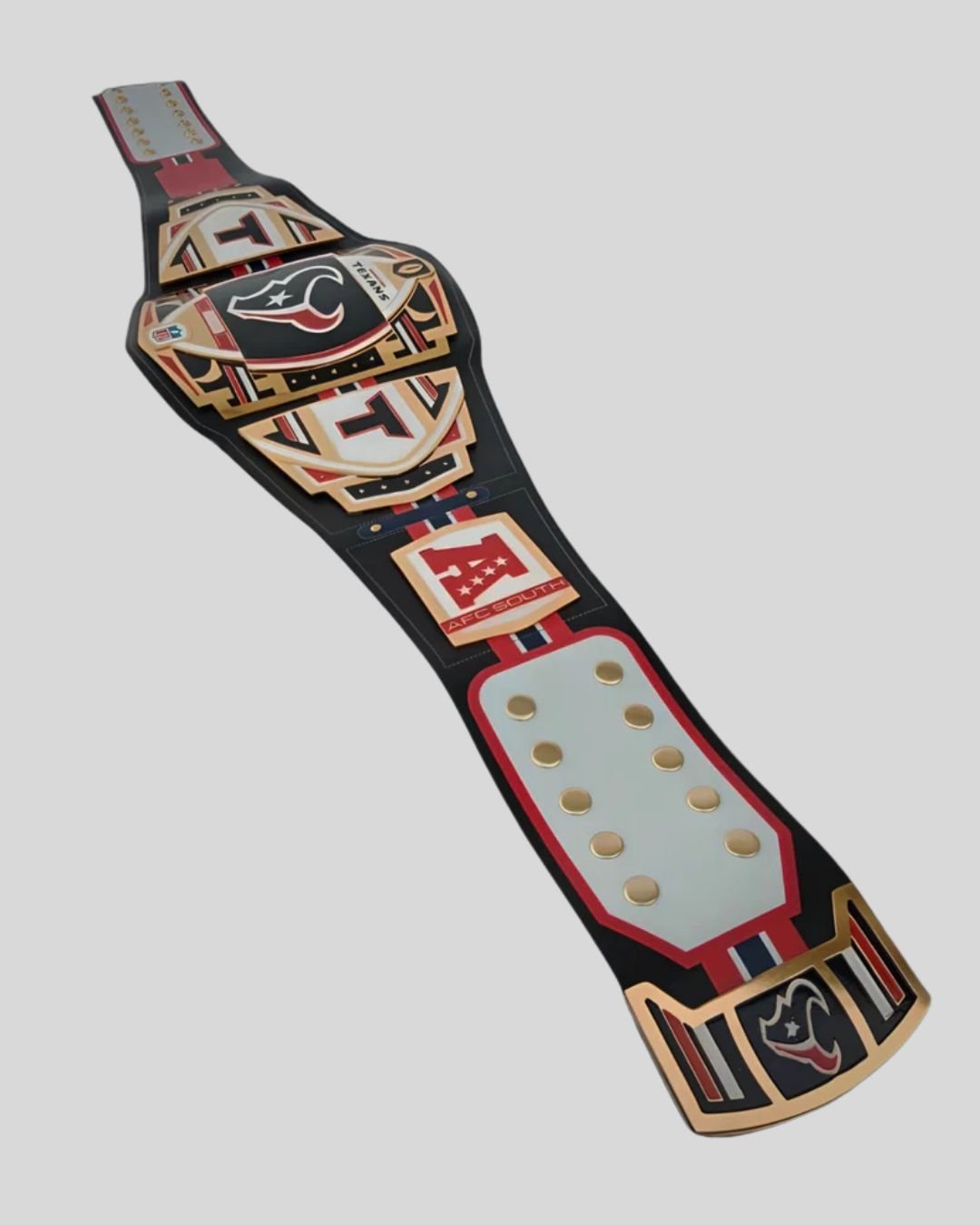 From tailgating at NRG Stadium to displaying it in your fan cave, this belt delivers unmatched flair. The intricate gold detailing, star-themed side plates, and the team’s founding year (EST. 2002) pay homage to Houston’s gridiron spirit and competitive legacy.
