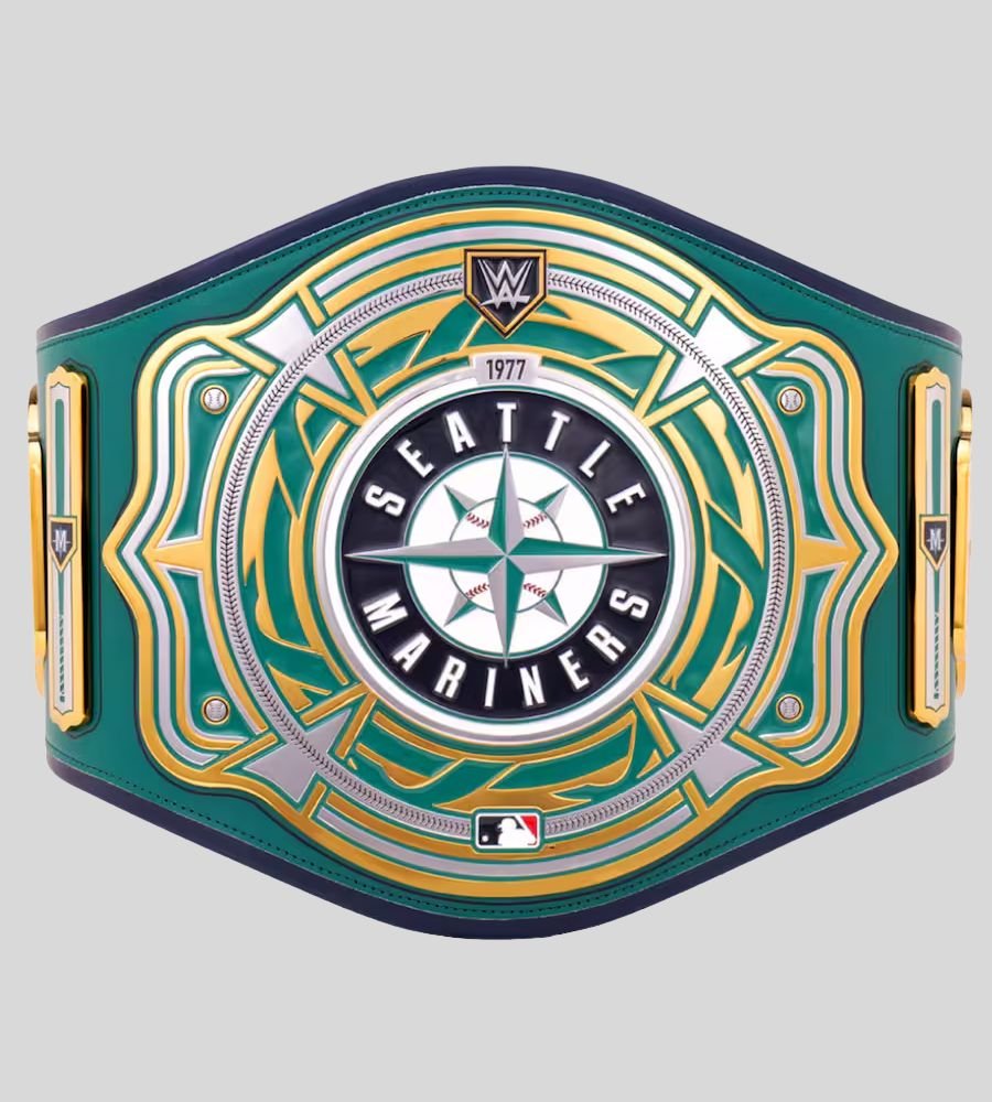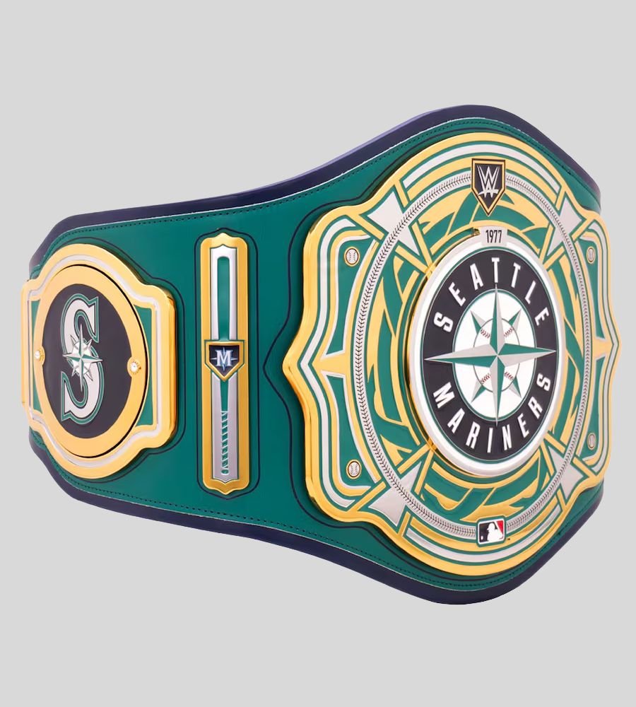 Own the Seattle Mariners Championship Belt with brass plates and green leather strap. WWE x MLB Legacy Title with customization options – perfect for Mariners fans.