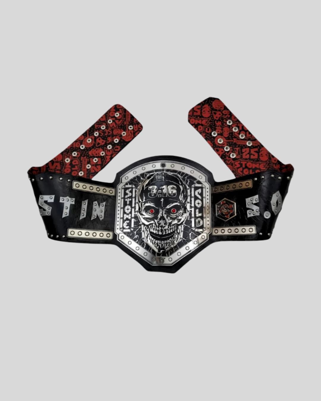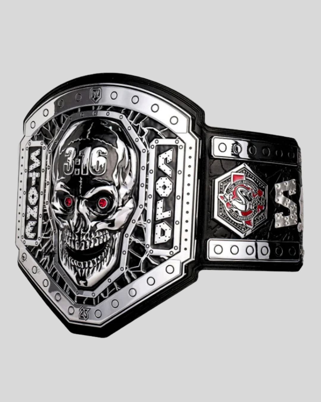Channel ruthless attitude with the Stone Cold Steve Austin Legacy Belt – a hardcore tribute to the Texas Rattlesnake. With 3:16 etched into a silver skull centerpiece and a red-black Austin strap, this belt captures the defiant spirit of WWE’s antihero.