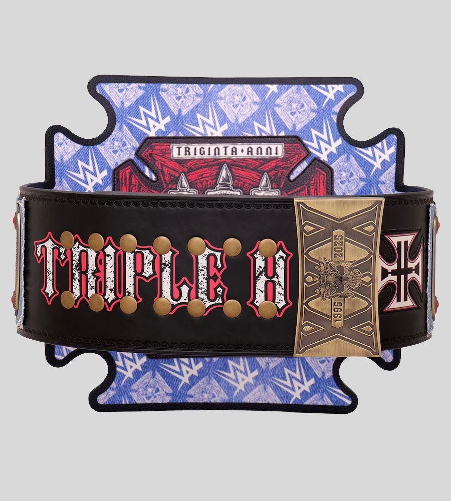 Celebrate the legacy of “The Game” with the Triple H Championship Belt. Designed with bold brass plates, red gem detailing, and a premium black leather strap, this belt honors one of WWE’s most decorated champions. Perfect for collectors, fans, or as a display piece for wrestling passion.