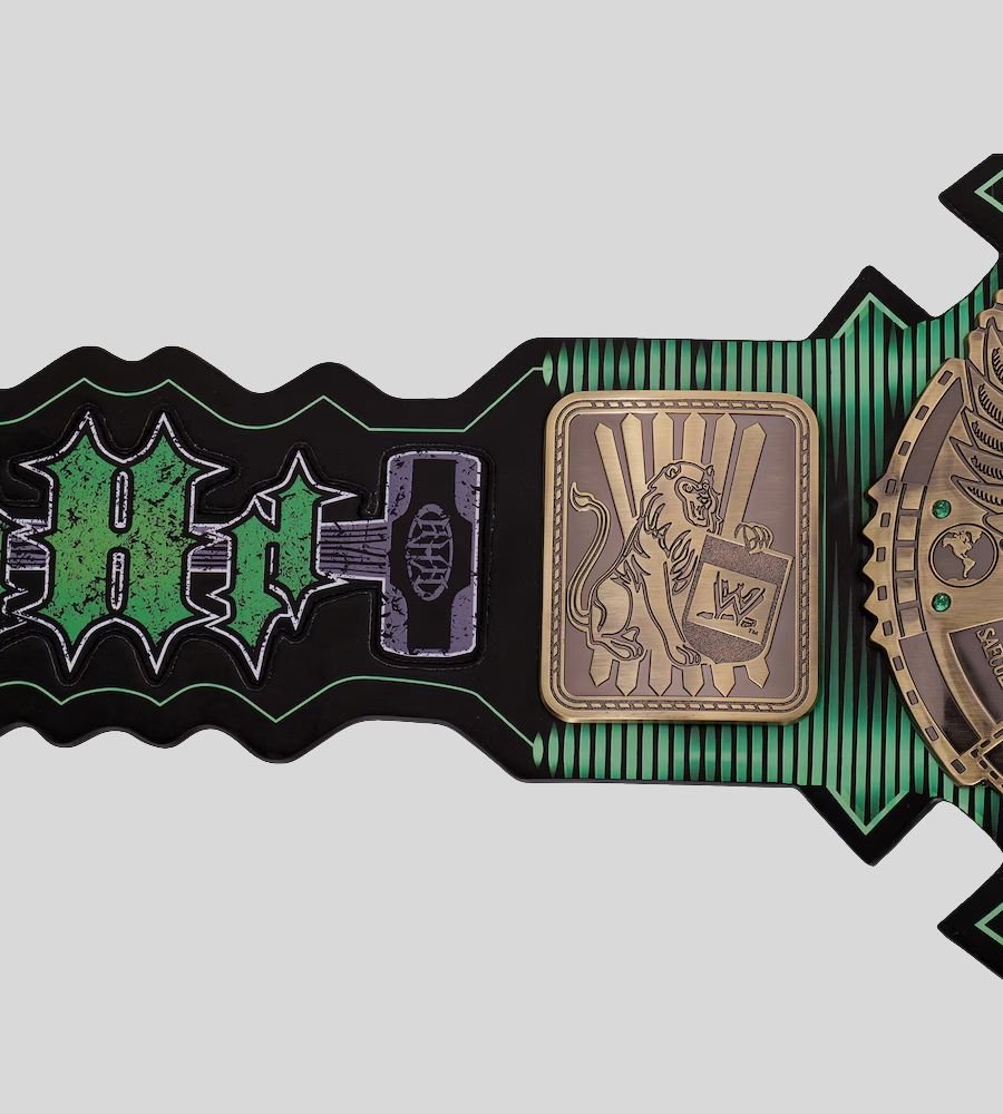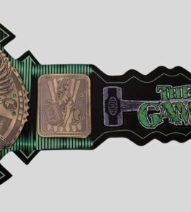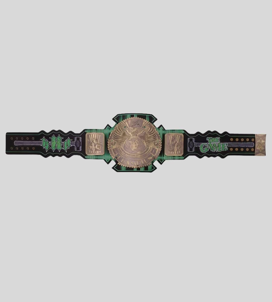 Celebrate the legacy of Triple H with this exclusive WWE Championship Game Attitude Era Belt inspired by “The Game” and D-Generation X. Featuring a bold green strap, detailed brass plates, and classic WWE eagle centerpiece, this belt is perfect for collectors, fans, and display. Custom leather strap and plating options available.
