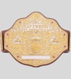 Step into history with the Big Gold World Heavyweight Championship Belt – the ultimate symbol of prestige carried by legends across generations. The oversized golden centerpiece showcases “World Heavyweight Wrestling Champion” engravings, crowned with a regal emblem, and surrounded by intricate scrollwork. Side panels feature classic wrestling motifs, enhancing the belt’s royal design.