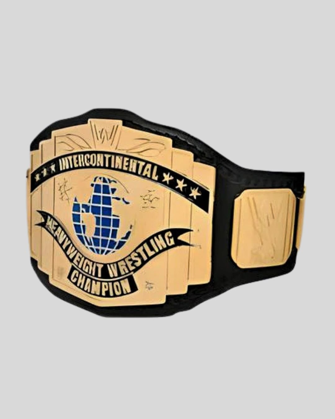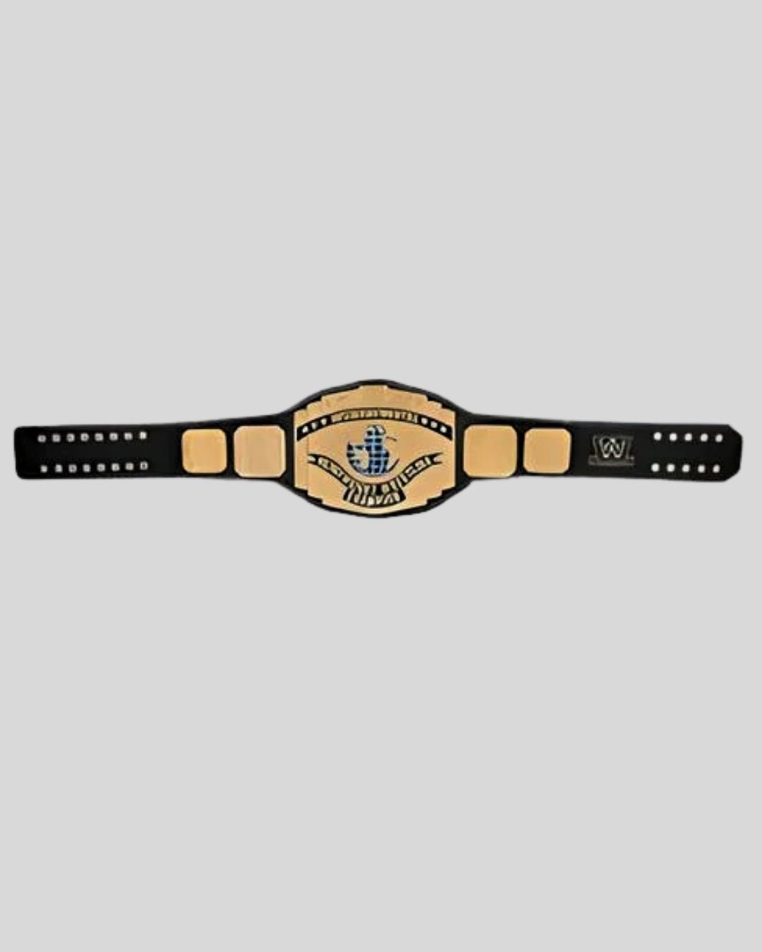 Honor the legacy of global champions with the WWE Intercontinental Belt in black. Featuring a brass globe centerpiece and heavyweight title text, this belt pays tribute to one of WWE’s most prestigious titles. Designed for serious collectors with full customization options.