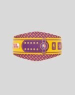 Purple & gold Lakers x WWE championship belt. Yellow leather strap with full-color centerpiece. Brass plates with side “LA” engravings. Custom engraving and CNC upgrade options.