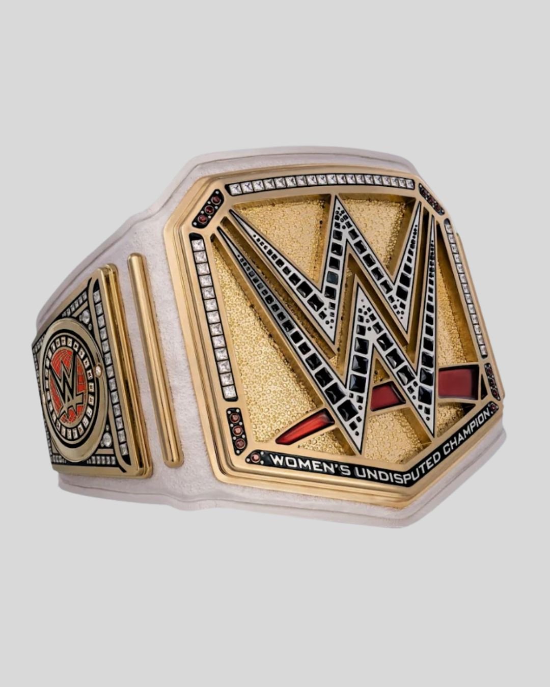 Celebrate women’s dominance in WWE with this Undisputed Universal Championship Belt. Featuring a crystal-accented WWE logo, gold brass plates, and a premium white leather strap, this title combines elegance and strength in a powerful collector’s edition.