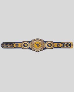 Honor the West Virginia Mountaineers with this WWE Legacy Belt. Featuring gold brass plates, the iconic “WV” logo, and full customization options.