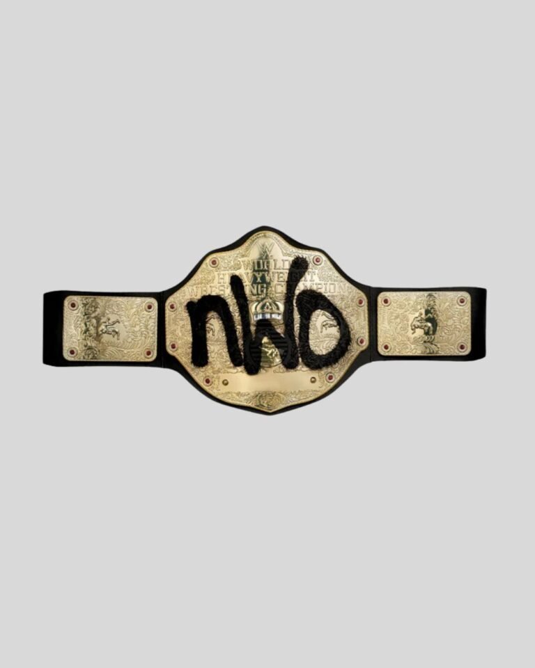 Iconic, rebellious, and unforgettable—the NWO Championship Belt pays tribute to the legendary New World Order faction. With bold spray-painted lettering over a classic heavyweight gold plate, this belt is a must-have for diehard fans of WCW’s most disruptive era.