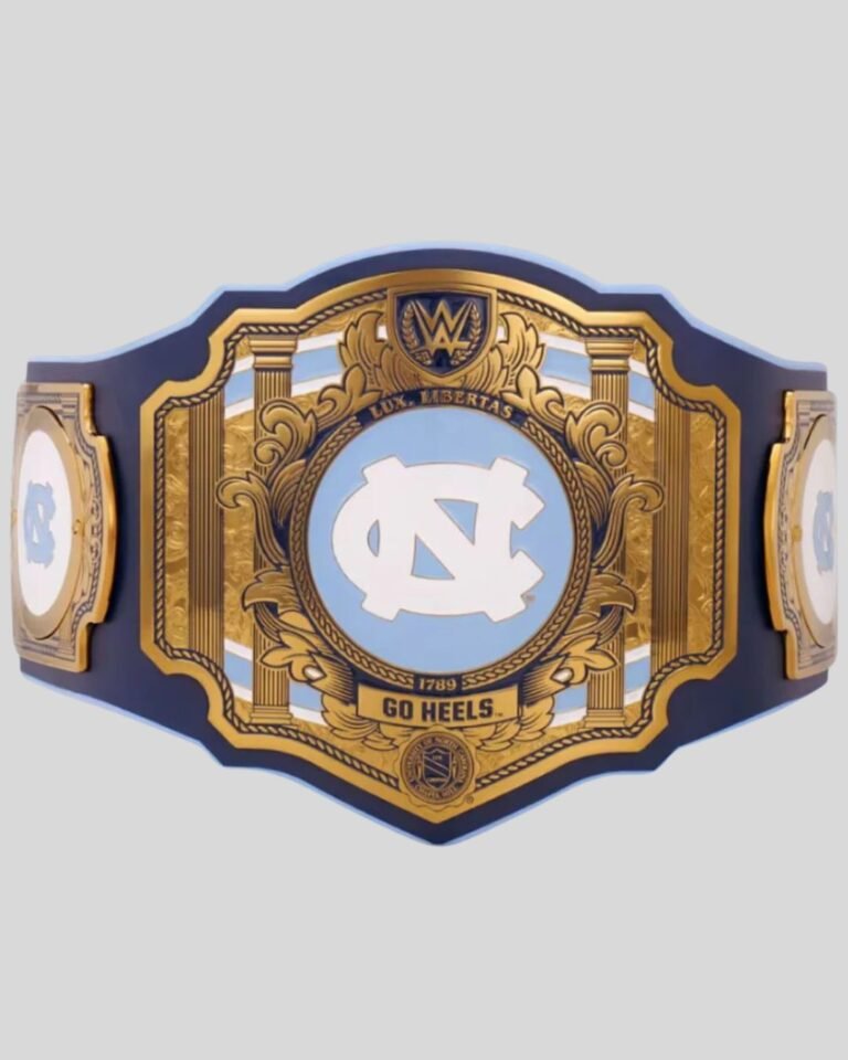 Celebrate UNC pride with this WWE-style legacy belt featuring the interlocking NC logo, 1789 detail, and signature “Go Heels” motto. Custom options included.