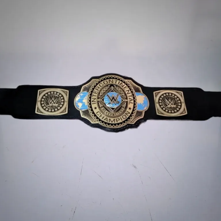 Experience the evolution of WWE with the 2024 Intercontinental Belt, redesigned with bold blue globe plates and a newly detailed brass centerpiece. A must-have collector’s item that reflects the global prestige of this legendary mid-card title. Ready to customize for your legacy.